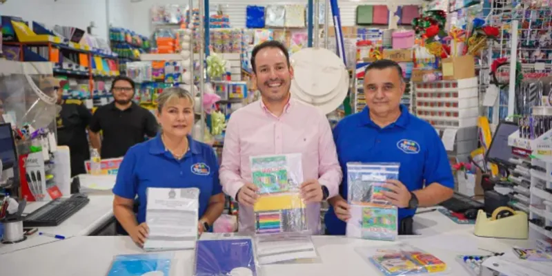 En esta ocasión, el secretario de Economía, Ricardo “Pity” Velarde Cárdenas, visitó Distribuidora Herser, una empresa sinaloense que forma parte del programa como proveedora, genera 12 empleos y cuyo punto de venta visitado en la colonia Salvador Alvarado, en Culiacán, también funge como centro de canje de paquetes de útiles escolares gratuitos para padres de familia y tutores.