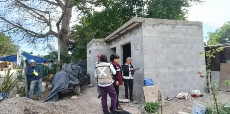 Por su parte, la segunda vivienda, perteneciente a la señora Socorro Olivas, presenta un avance del 60 por ciento, con actividades enfocadas en la instalación de viguetas y bovedillas, preparatorias para la colocación de la losa del techo.
